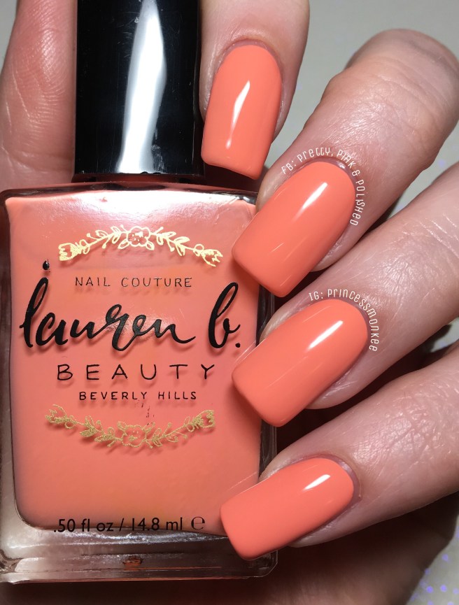 First up is a  Lauren B. Beauty polish called Coral Canyon. I would call this less coral and more a bright peach/apricot creme but whatever it is, I love it! It’s a beautiful colour with a great formula, I found three thin coats to be better than two normal coats to avoid ‘shadowy patches’. This would look better on someone who is not as pale as me (!) however it will be great for nail art! It is a nice big 14.8ml bottle. This retails at approx. £14.