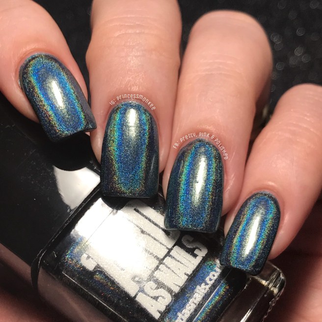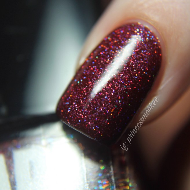 The last polish in this collections was created by @nailpolishdude23 and another stunning holo (does Kat make any other kind?!). “Violacious Dream” is a deep, plum-toned purple, this was another one-coat wonder. I love deep and dark polishes but the holo in this makes the purple shine and gives it so much depth. Shown with top coat.