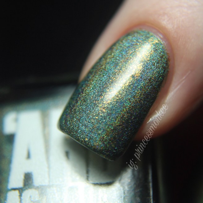 “Gunning for Glitter” is a sparkling gunmetal holo. I like grey toned polishes but I do really enjoy gunmetal hues, possibly a throwback to when I used to paint Warhammer models… This, like the other holos, was done and dusted in one coat plus top coat. This was created by Jason, although I’m not quite sure who Jason is and why he wanted to remain anonymous. If I had made this stunner I’d be shouting it from the rooftops!