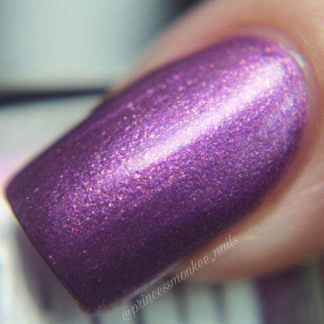 “Sunset Horizon” is a bright purple with shimmer that shines silver and pink and blue.