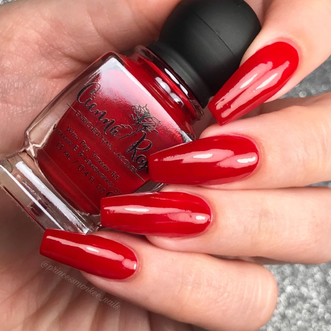Up next is ‘Je T’aime’, a stunning red crelly. I LOVE red polishes and this is just perfect, it’s so glossy too! Swatch shows two coats and no top coat.