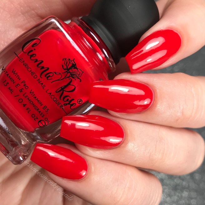 First up is the most Christmassy colour there is, red! ‘Vixen’ is an orange-toned red crelly polish which is so glossy, even without top coat. It’s so beautiful!
