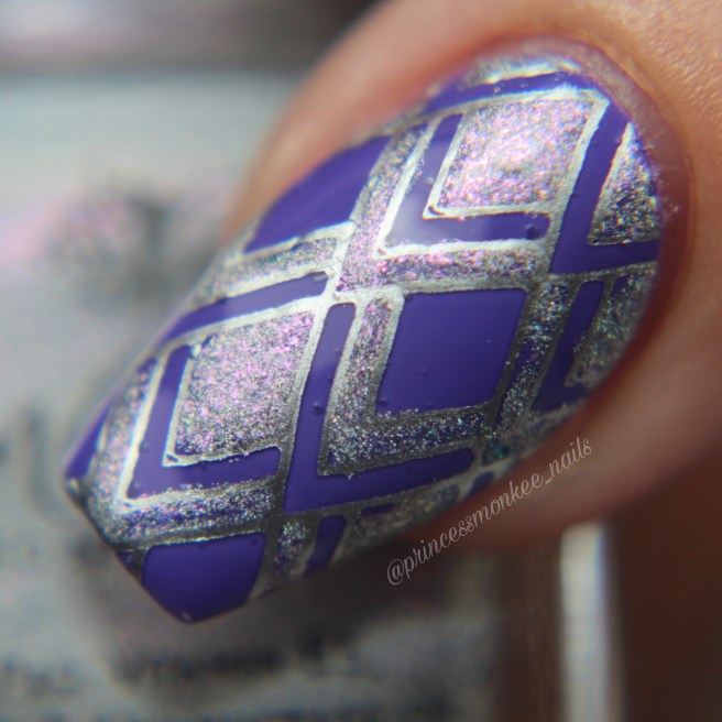 I teamed it with ‘Pretty Please’ (Cienna Rose) and made some decals using UberChic’s ‘Art Deco Chic’ stamping plate. I think the purple really brings out the violet of ‘Tiara’.